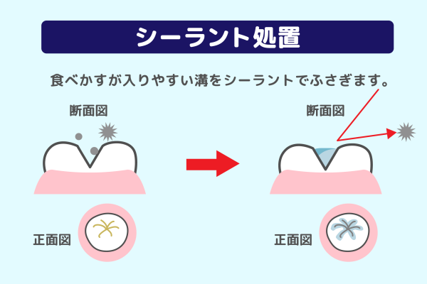 - シーラント:処置後は定期検診で欠けや摩耗がないかチェックし、必要に応じて再処置します。